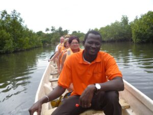Makasuta is a beautiful ecotourism destination; located 45 minutes form the hotel zone. We pick you up in your hotel and then drive through Brikama, the biggest town in the Western region, to Makasuta. On our arrival complementary coffee will be served. An indigenous guide will inform you about the park, before we start the boat trip or forest walk, depending on the tidal system of the river. During the boat trip we will be able to spot colorful birds, oyster collectors and mangrove swamps. In the forest walk there is a good chance of seeing a group of baboons, monkeys, and birds. We will see beautiful natural vegetation and visit an indigenous fortune teller – who lived in the forest for over three decades- and a palm wine tapper who will demonstrate how they climb and tap the wine from the tree. If you dare, you will get the chance to climb a few steps with the local climbing belt and taste the fresh juice of the palm. Gambian style buffet lunch will be served, and the women from the village will take care of the entertainment. If you want, you can even join them in their dancing! The last stop in this trip contains a visit to a local handy craft market, where you can buy all kind of souvenirs. Then our transport will be waiting to take us back to your hotel.